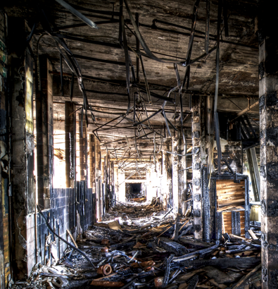 Fire, flood, storm or impact damage causes devastation to the insured.